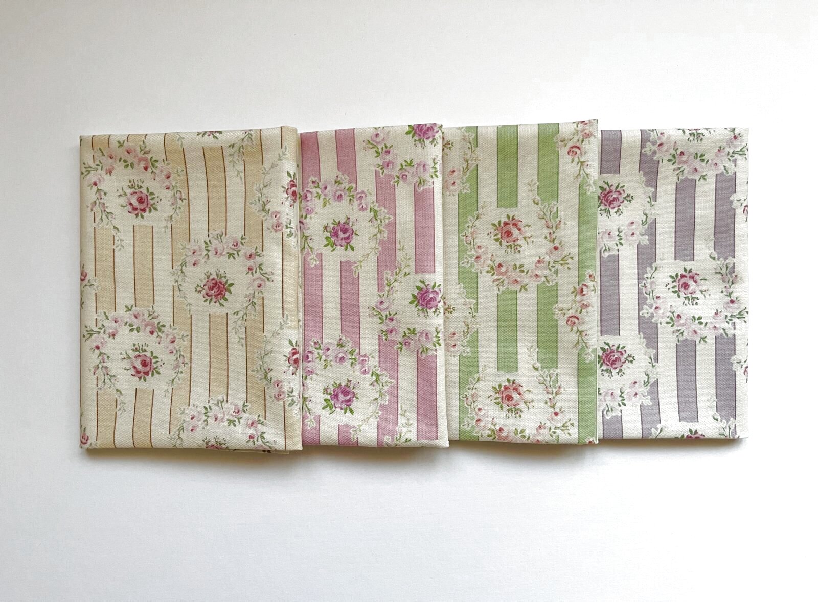 ストライプと薔薇柄の組み合わせ素敵なカットクロス4枚セット