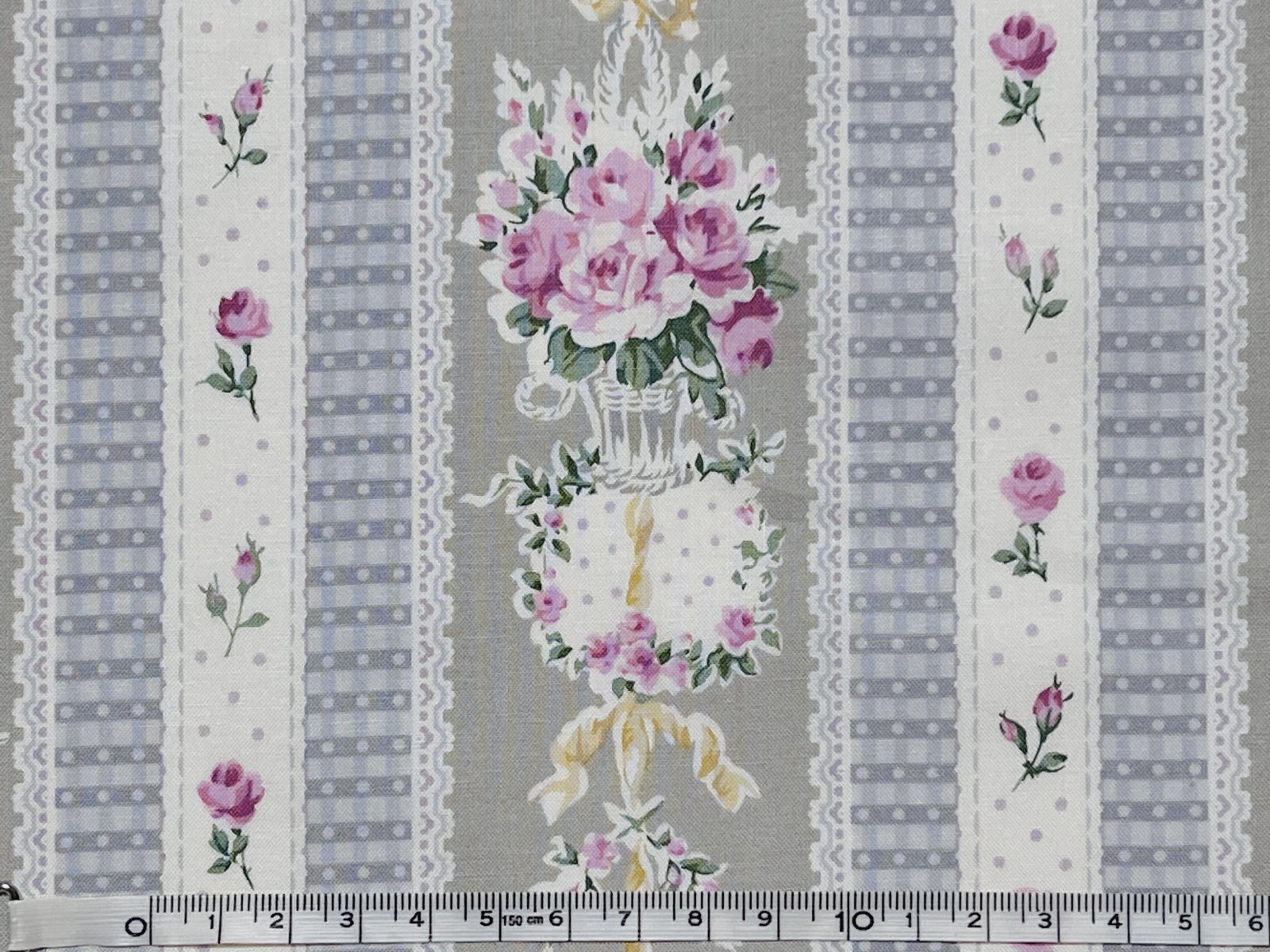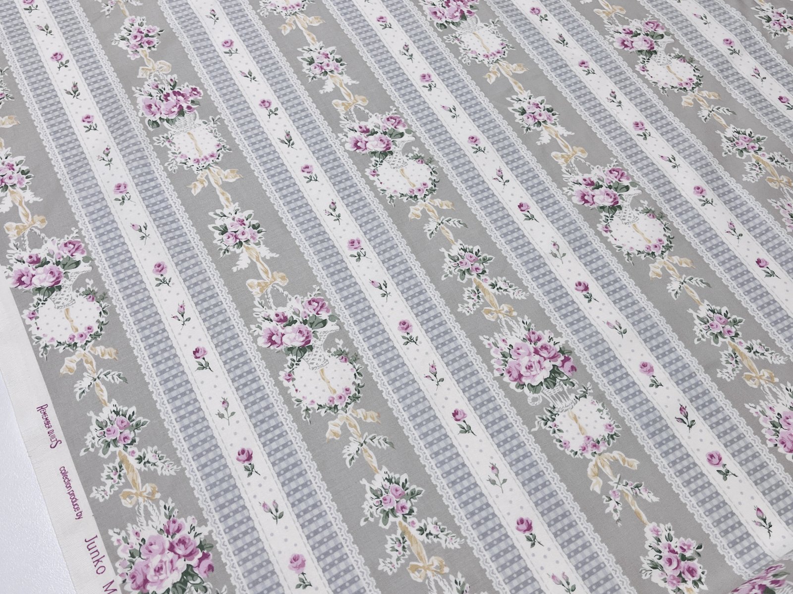 ホーム宮崎順子先生生地ローズボーダー グレー